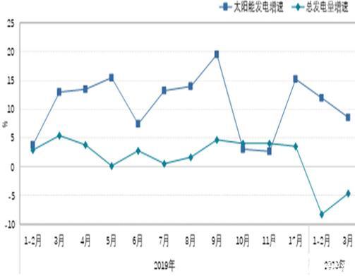 一季度,全国规模以上电厂发电量为1.58万亿千瓦时,同比下降6.8%,增速比上年同期降低11.0个百分点。全国水电、核电、并网风电和并网太阳能发电量分别为1963亿千瓦时、780亿千瓦时、1149亿千瓦时和528亿千瓦时,增速分别为-9.5%、1.2%、10.4%和20.3%,风电和太阳能发电量保持快速增长。